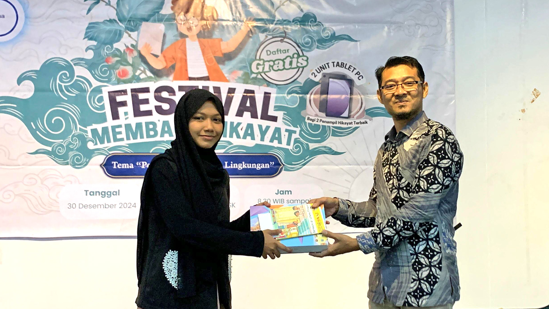 Banda Aceh—Manna Wassalwa, siswa SMP Negeri 8 Banda Aceh menjadi juara festival membaca hikayat kontemporer dengan tema Perubahan Iklim dan Lingkungan. Kegiatan tersebut berlangsung pada hari Senin (30/12/2024) di Auditorium lantai 2 FKIP USK.
